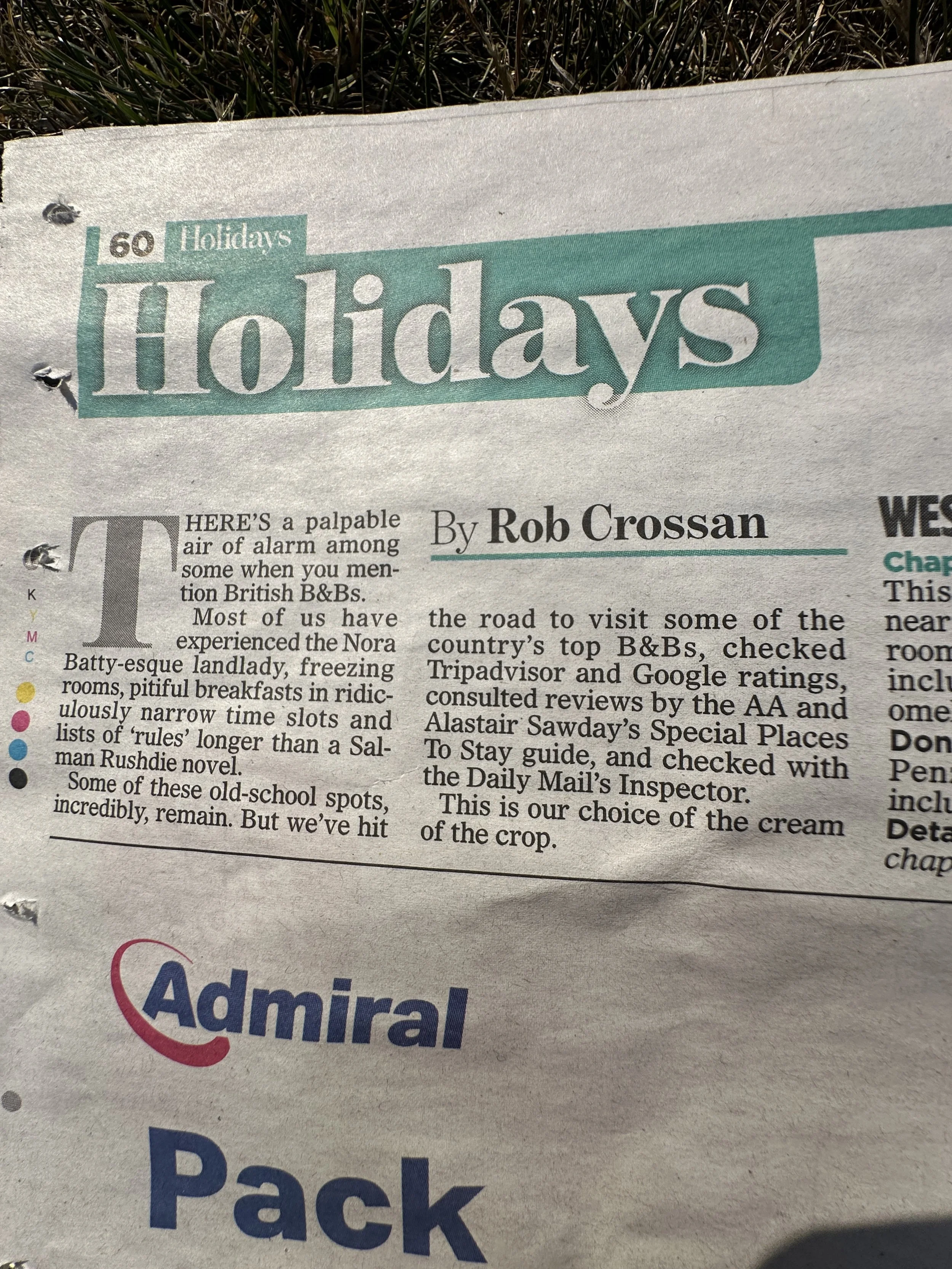 We’re absolutely delighted to be featured in the Daily Mail’s list of top B&Bs!