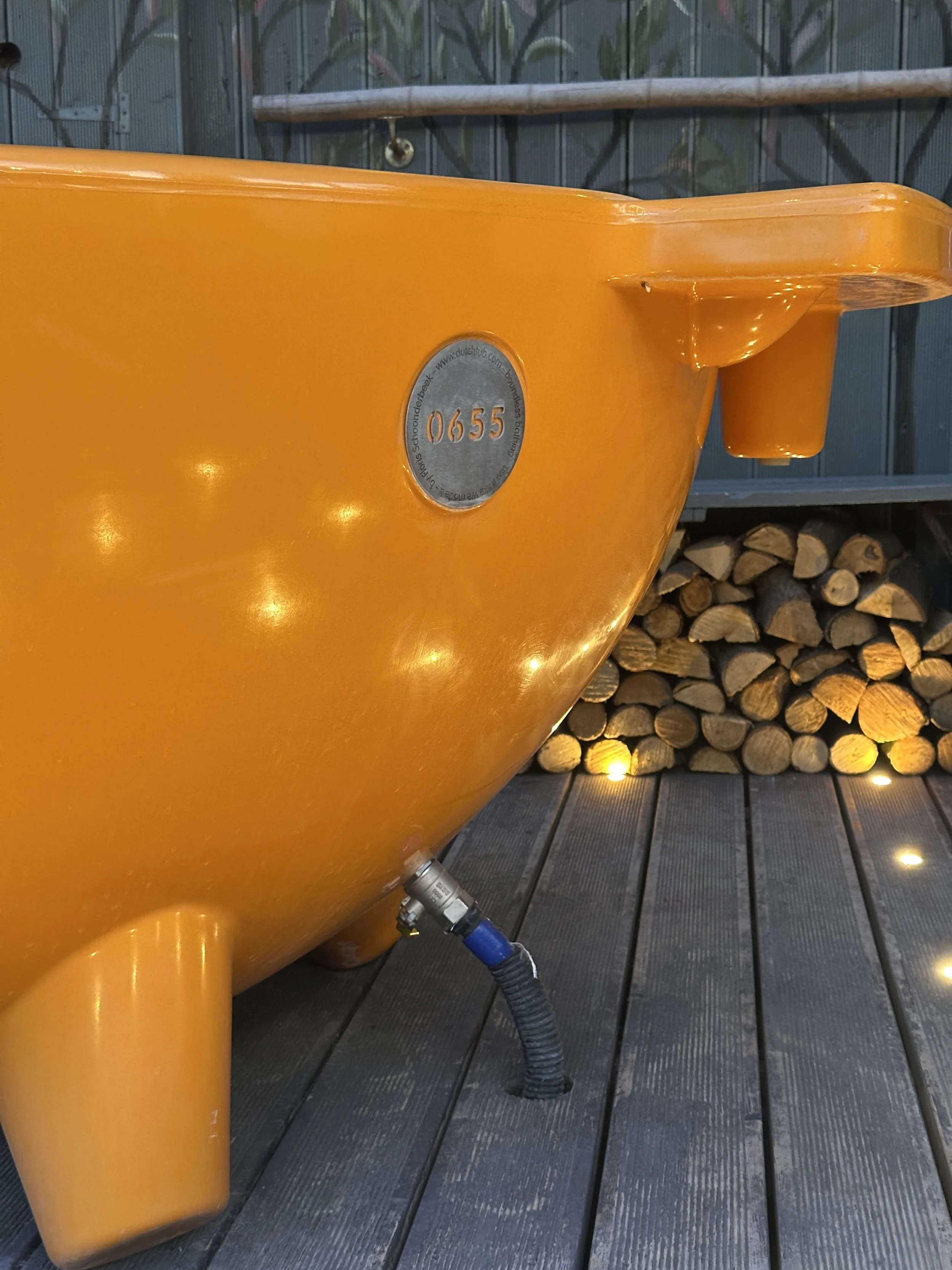 You can’t miss our vibrant orange hot tub, set within a handcrafted timber surround that offers privacy and shelter — the perfect spot to unwind in any weather.