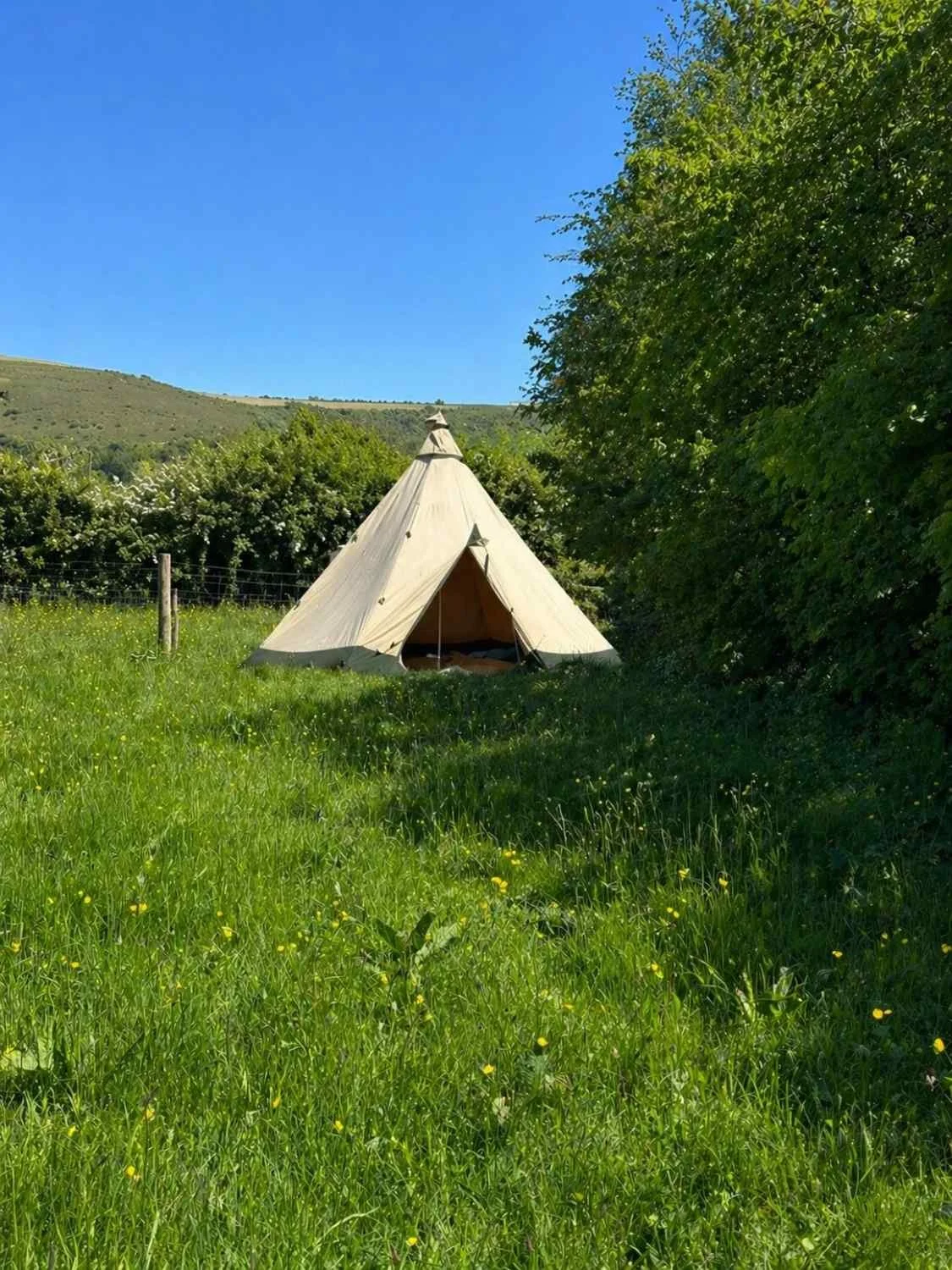 For larger groups, you're welcome to bring your own bedding and beds to add on the floor, up to a maximum of four people in the tipi. Between the hut and the tipi the whole site is yours — everyone gets their own space, and you can all come together around the fire pit when it matters most.
